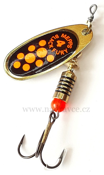 Rotační třpytka MEPPS 4 Black Fury zlatá / oranžové tečkySkladem 2 ks129 Kč/ ks